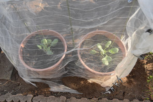 カリフラワー4本、芽キャベツ2本植え付ける。
