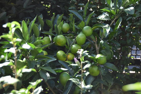 8月に蒔いたキュウリ、実が採れ始めました。暑さの影響でしょう、今年は7月に蒔いたものは実が全く採れませんでした。落果しそうだったミカン。