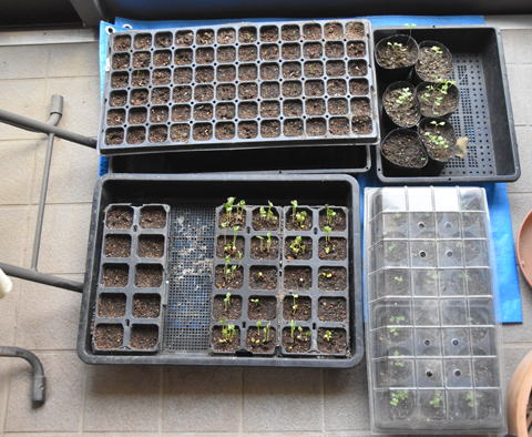 ミニ白菜の種を蒔いたものの半分くらいしか発芽せず。同じ時に蒔いたほうれん草はまだまったく芽が出てきていません。ホウレンソウには暑すぎるのでしょうか。